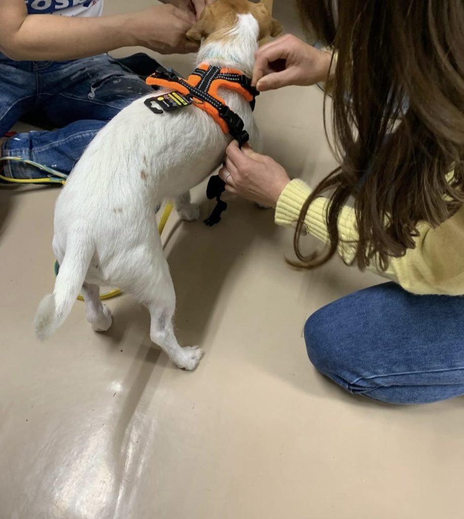 それぞれの子に合わせてフィッティングしますので、1頭あたり30分程度をめどに完全予約制で行います。